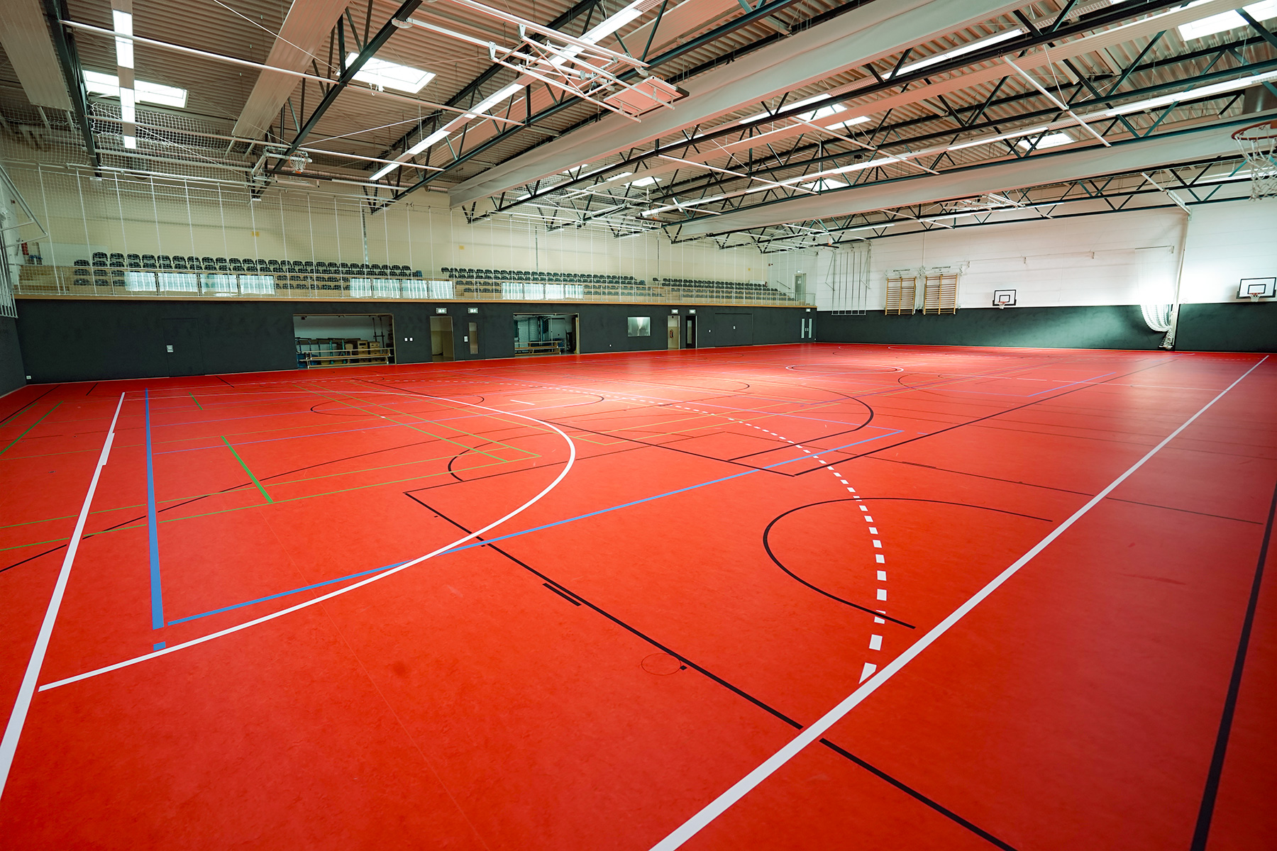 Für die sportliche Betätigung stehen umfangreiche Sport- und Spielgeräte zur Verfügung. Die Halle beherbergt ein Hallenhandball-/ Hallenfußballfeld, ein Tennisfeld, drei Volley- und Basketballfelder sowie sechs Badmintonfelder. Für sportliche Veranstaltungen steht eine Tribüne mit 300 Sitzplätzen zur Verfügung. Moderne und großzügig ausgestattete Sanitär- und Umkleideräume gewährleisten die notwendige Sicherheit und Hygiene.